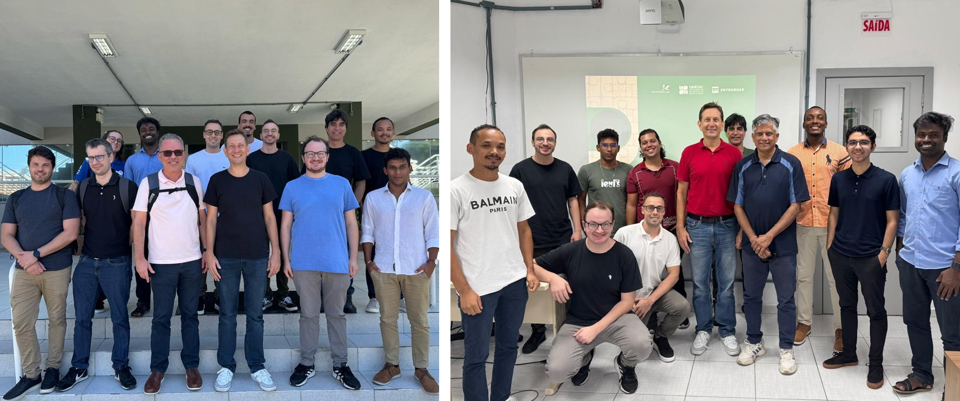 Além da parceria científica com o Departamento de Engenharia Oceânica da Texas A&M University (TAMU), o Geoenergia Lab recebeu quatro estudantes de graduação da TAMU para um período de estágio de 2 meses no laboratório, de junho a julho de 2025. O estágio incluiu o desenvolvimento de projetos direcionados nas áreas de mecânica dos fluidos computacional, simulação numérica, implementações em GPU e modelagens de captura, utilização e armazenamento de carbono (CCUS). São os estudantes: