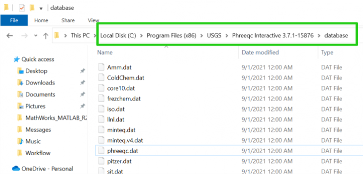 No meu computador é C:\Program Files (x86)\USGS\Phreeqc Interactive 3.7.1-15876\database (veja figura).