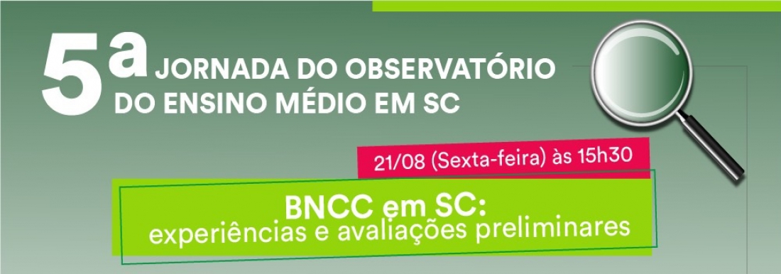 A Quinta Jornada do Observatório do Ensino Médio em Santa Catarina, que acontecerá nos dias 21/08, 18/09 e 16/10 de 2020, pretende centrar as suas discussões no processo de elaboração e implementação da BNCC do Ensino Médio em SC.