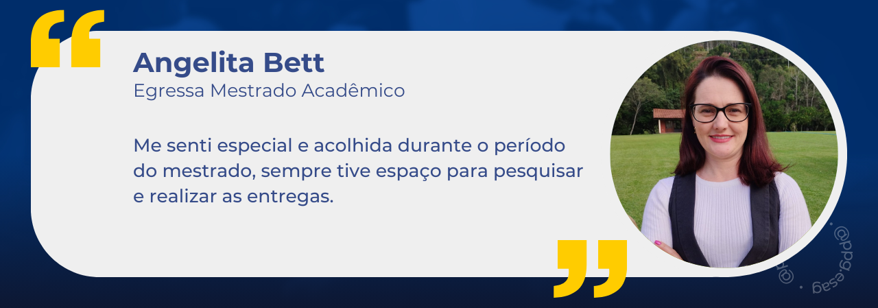 O mestrado acadêmico em Administração pela Esag foi uma experiência fantástica - os professores foram verdadeiros guias, pude contar com muito conhecimento compartilhado e muitos ensinamentos. Dos colegas muita cooperação e alguns que se tornaram verdadeiros amigos. Me senti especial e acolhida durante o período do mestrado, sempre tive espaço para pesquisar e realizar as entregas, o Campus da Udesc foi a minha casa na metade da semana literalmente, cheguei a passar 3 turnos do dia imersa dentro da Udesc por 1 ano. Ouvi uma frase na primeira aula "Na acadêmica você não faz nada sozinho" faz sentido todos os dias - ainda tenho artigos em processo de publicação e não é sozinha, sempre apoiada pelo orientador e outros professores, assim como as parcerias dos colegas.