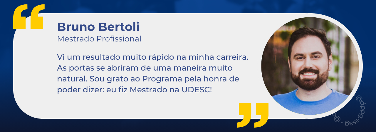 Vi um resultado muito rápido na minha carreira. Antes de finalizar o curso, fui contratado como professor universitário. As portas se abriram de uma maneira muito natural. Sou grato ao Programa pela honra de poder dizer: eu fiz Mestrado na UDESC!