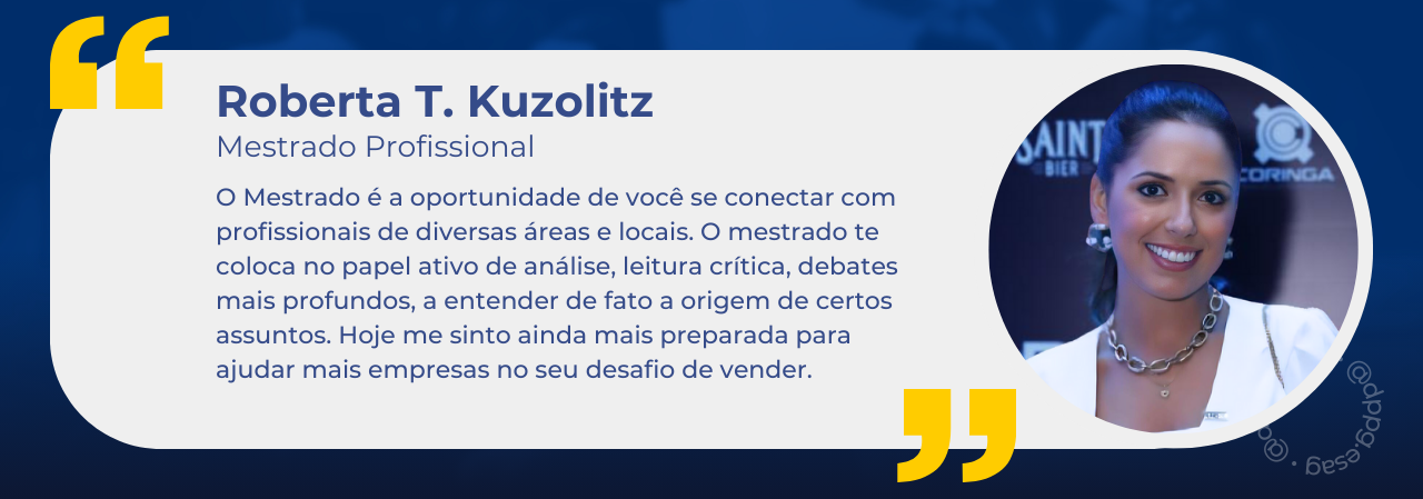 Estamos em um mundo no qual somos impactados por conteúdos superficiais a todo momento, o mestrado te coloca novamente no papel ativo de análise, leitura crítica, debates mais profundos, a entender de fato origem de certos assuntos. A linha de pesquisa na qual atuei, foi totalmente interligada a minha carreira e profissão: "Gestão, Inovação, empreendedorismo"; abordamos temas como transformação digital, jogos políticos nas empresas; framework de tomada de decisão; Assuntos que estão totalmente conectados com o dia a dia. Além disso, a escolha da minha dissertação foi totalmente ao encontro do desafio que as startups possuem: "vender mais", e ao encontro do que ajudo as mesmas: como implementar um processo de vendas e os papéis de cada um dentro dessa jornada. Hoje me sinto ainda mais preparada para ajudar mais empresas no seu desafio de vender.