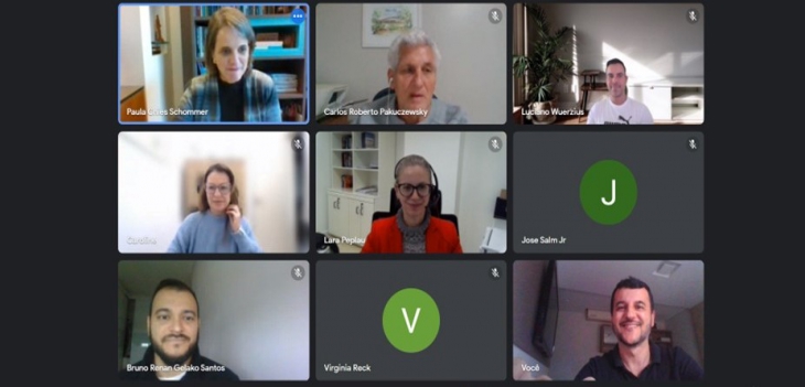 A reunião contou com a participação de: Bruno Santos - Consórcio Ciga, Carlos Pakucewsky - Observatório Social de Blumenau, Caroline de Souza - Tribunal de Contas do Estado de Santa Catarina, Lara Peplau - Ministério Público de Santa Catarina, Luciano Wuerzius - Banco Mundial e Virgínia Reck - Consórcio Ciga. Além disso, estavam presentes a coordenadora do projeto de pesquisa que dá origem à Rede, Paula Chies Schommer - Udesc, Fabiano Raupp - Udesc, o coordenador da comunidade de padronização, que integra a Rede, José Francisco Salm Jr. - Udesc, e a integrante da secretaria Victoria Araújo - act4delivery.