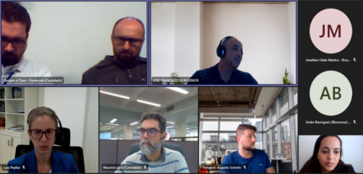 A reunião contou com a participação de 10 conselheiros da comunidade, sendo eles: André Baumgratz - Prefeitura Municipal de Blumenau; Ângela Preuss - Prefeitura Municipal de Timbó; Claus Gruetzmacher – Prefeitura Municipal de Pomerode; Fernando Schmitz - Ministério Público de Santa Catarina; Gustavo Roedel - Prefeitura Municipal de Pomerode; Jonathan Artmann - Ministério Público de Contas; Jonathan Martins - Prefeitura Municipal de Brusque; Lara Peplau - Ministério Público de Santa Catarina; Mauricio Lyrio - Secretaria de Estado da Administração; e Vitor Pargendler - Ministério Público de Santa Catarina.