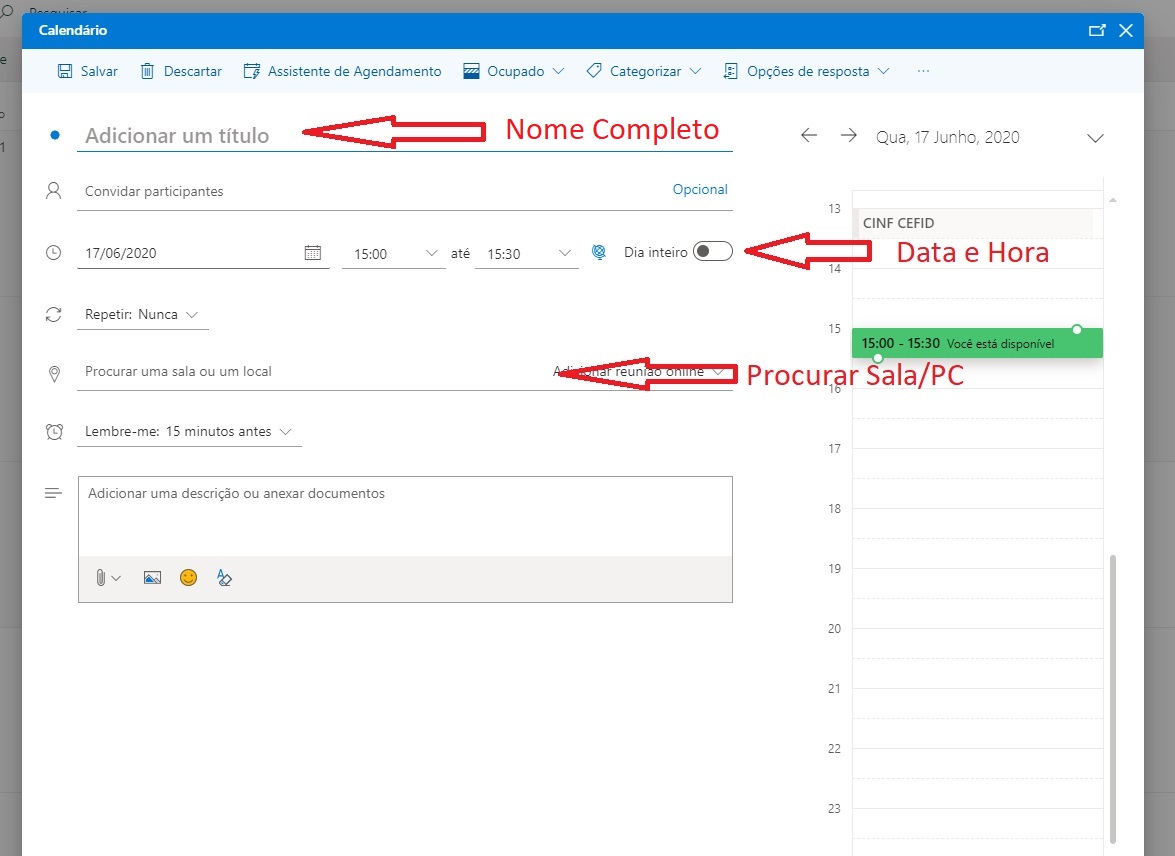 5 - Adicione seu Nome Completo ao título a reserva.