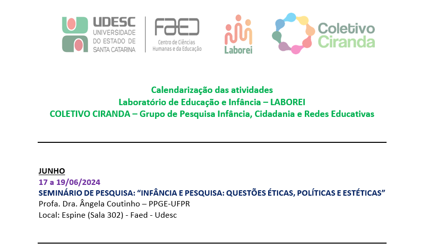 SEMINÁRIO DE PESQUISA: “INFÂNCIA E PESQUISA: QUESTÕES ÉTICAS, POLÍTICAS E ESTÉTICAS”