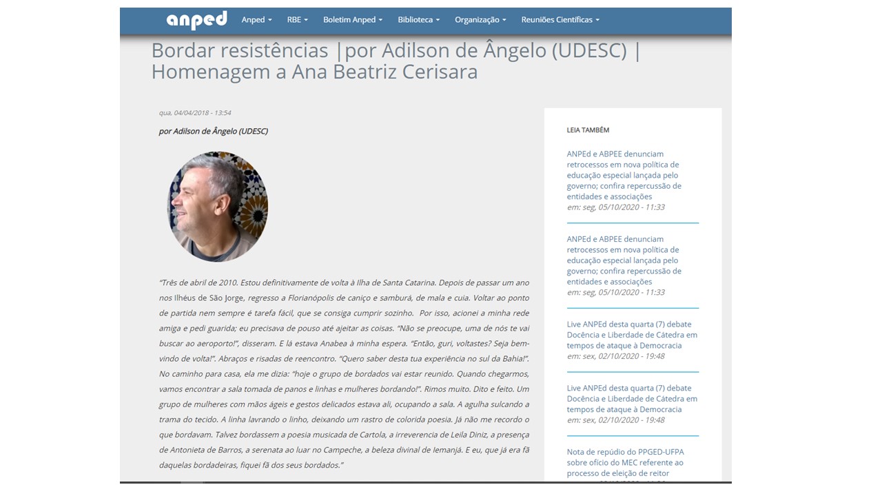 O LABOREI, no processo de honrar as pessoas que nos antecederam e que seguem conosco pensando na infância como um tempo das crianças terem o direito de serem crianças, presta a sua homenagem à Profa. Dra. Ana Beatriz Cerisara.