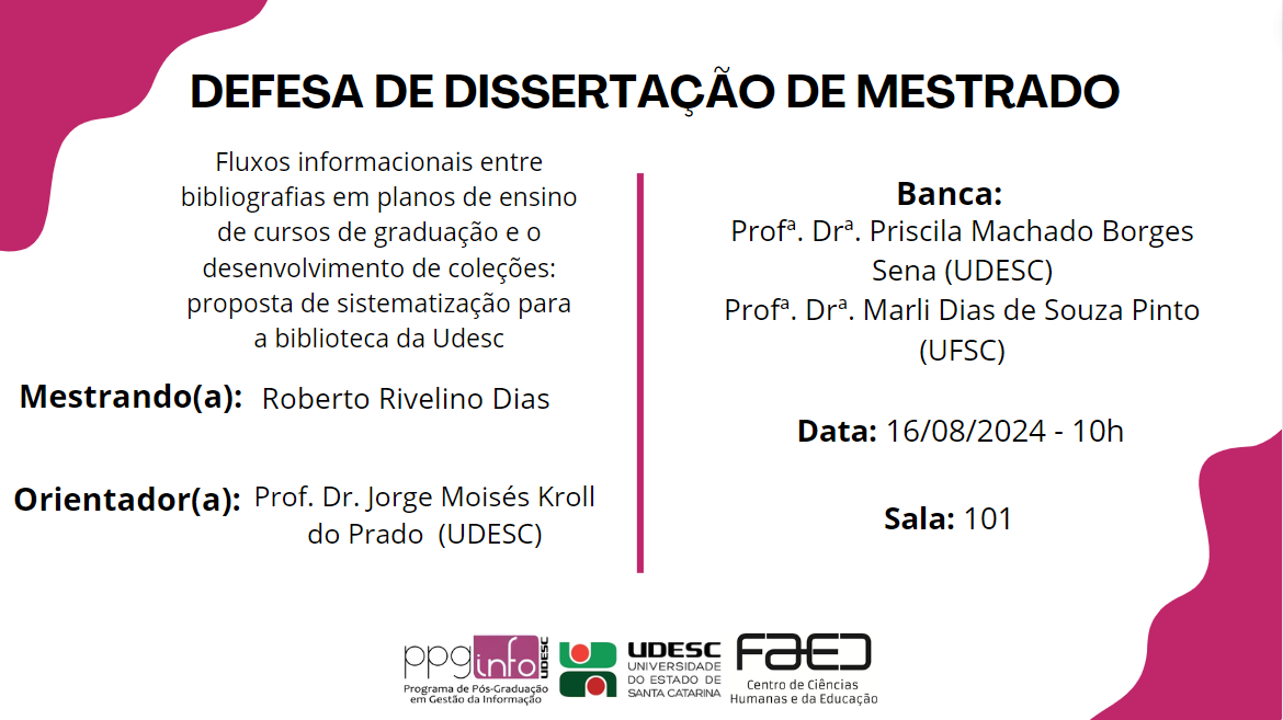 Banca: Jorge Moisés Kroll do Prado (UDESC), Priscila Machado Borges Sena (UDESC), Marli Dias de Souza Pinto (UFSC)
