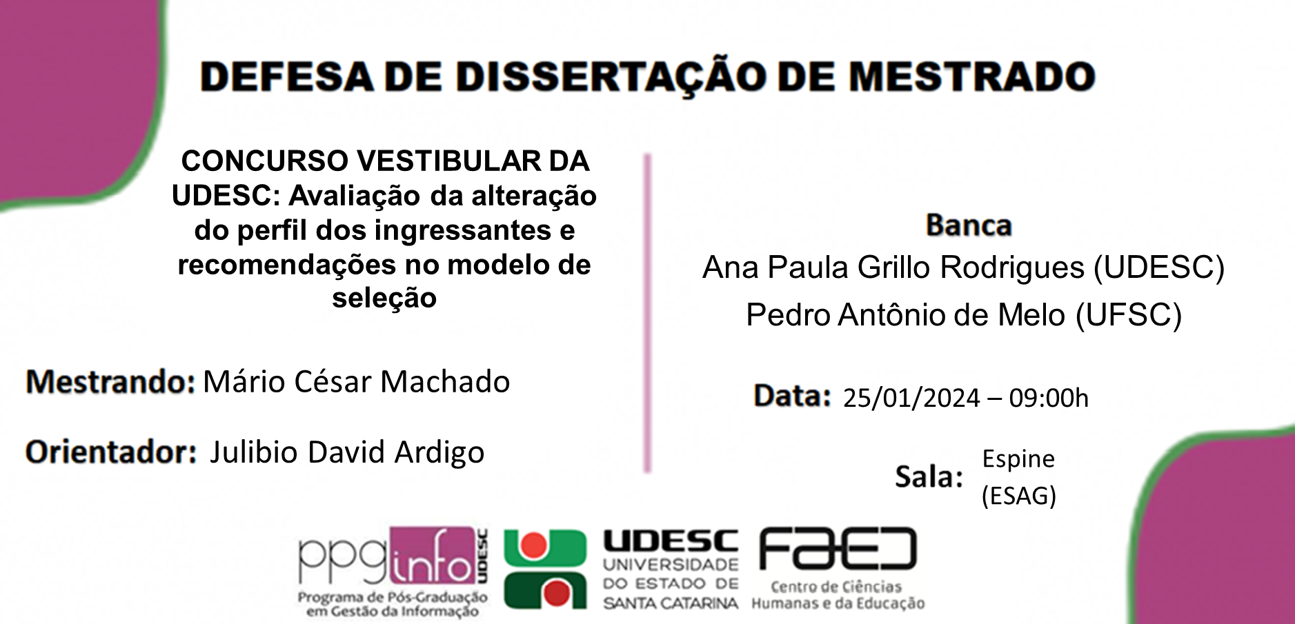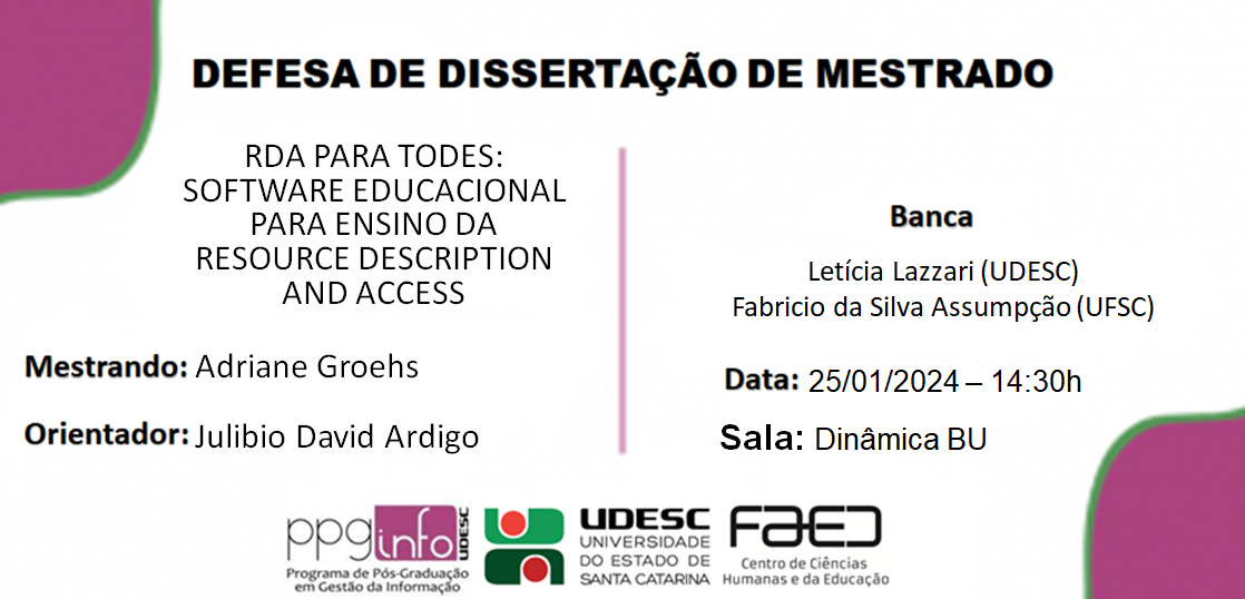 Banca: Julibio David Ardigo (UDESC), Letícia Lazzari (UDESC), Fabricio da Silva Assumpção (UFSC)