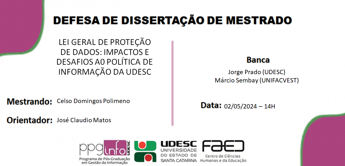Banca: José Claudio Matos (UDESC), Jorge Prado (UDESC), Márcio Sembay (UNIFACVEST)