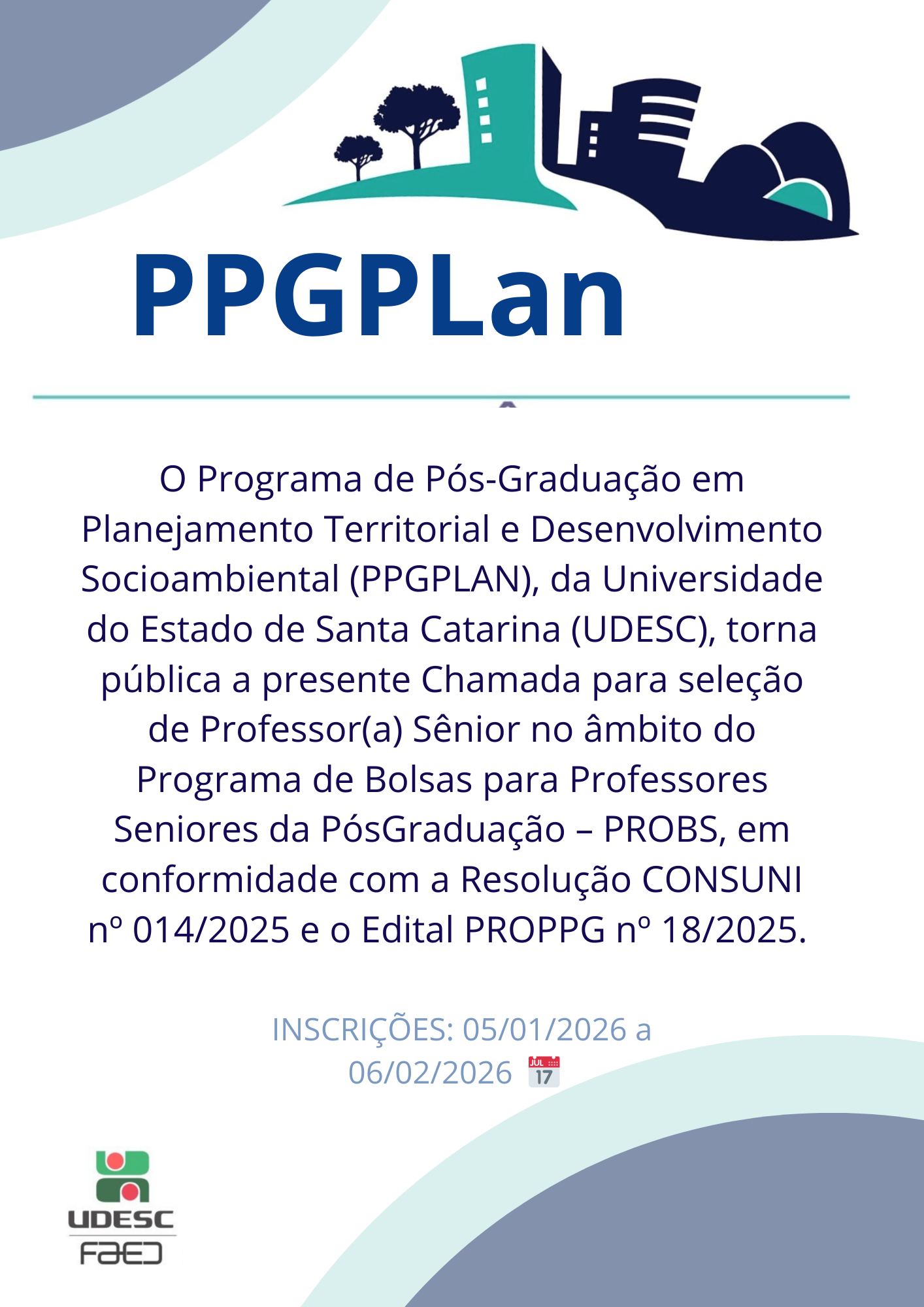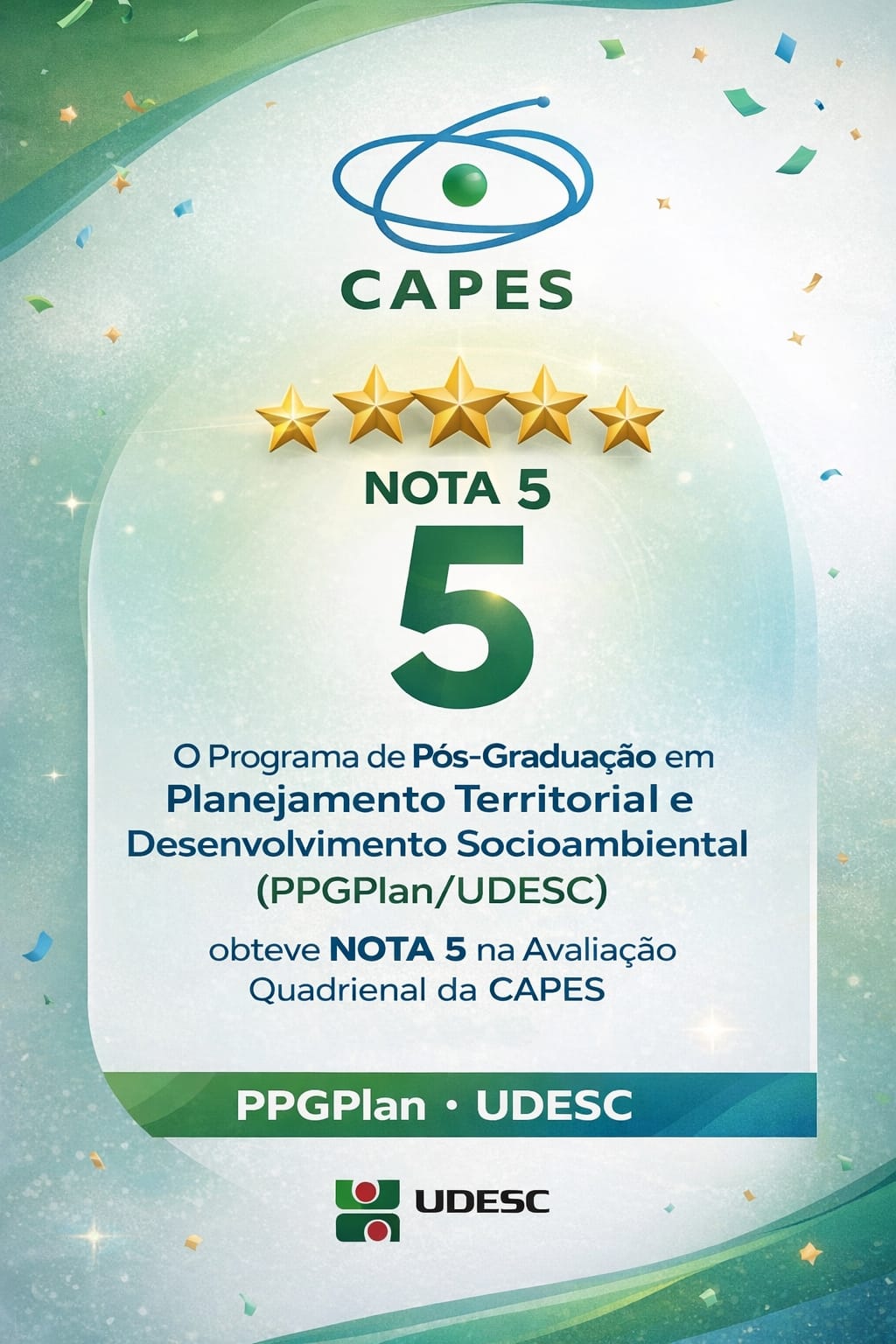 CONCEITO 4 CAPES | Os cursos de Mestrado e Doutorado do PPGPLAN são gratuitos!