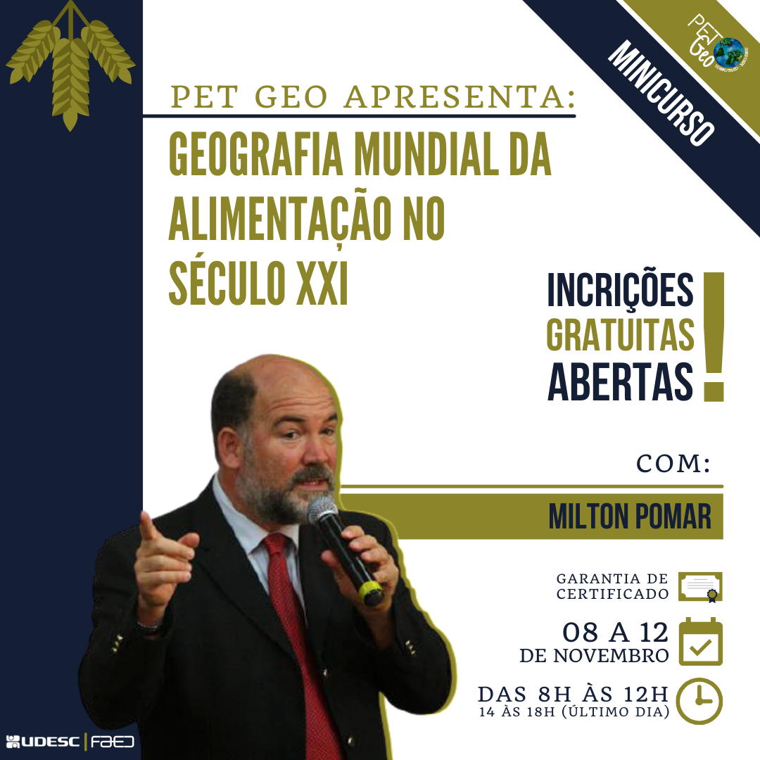 8h às 12h - CURSO (4º dia): Geografia Mundial da Alimentação do século 21 - PET Geografia
