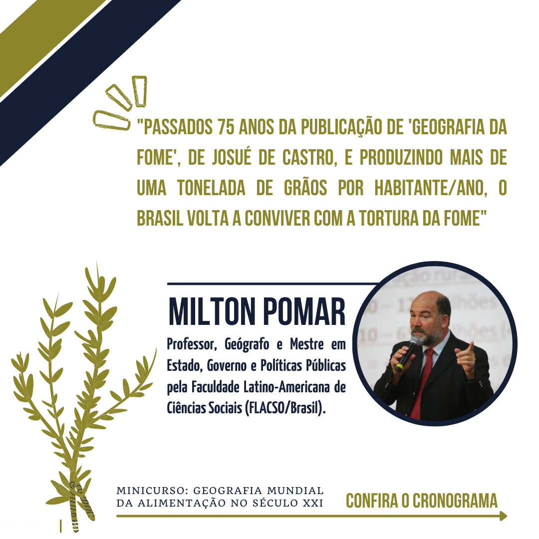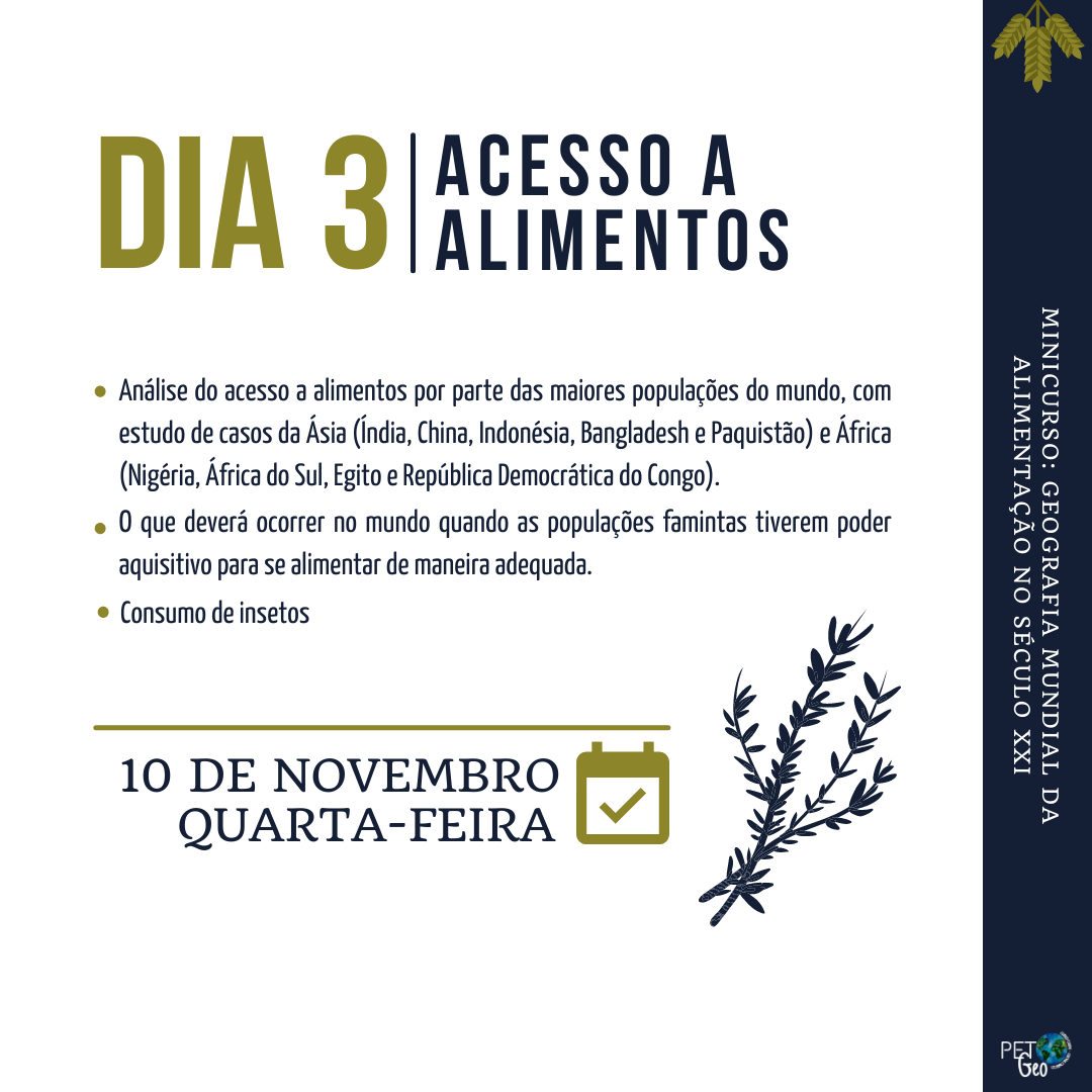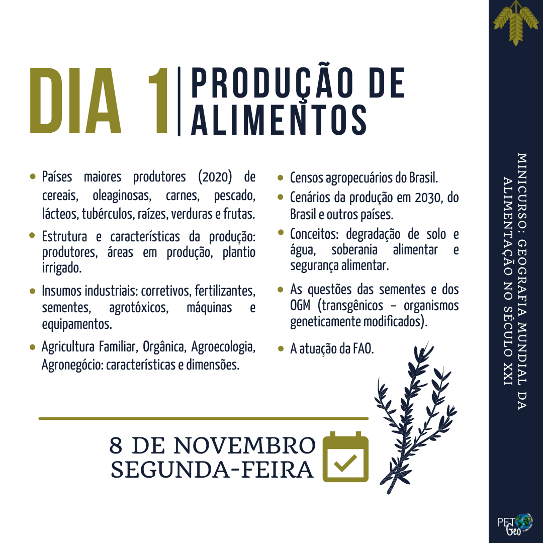 8h às 12h - CURSO (3º dia): Geografia Mundial da Alimentação do século 21 - PET Geografia