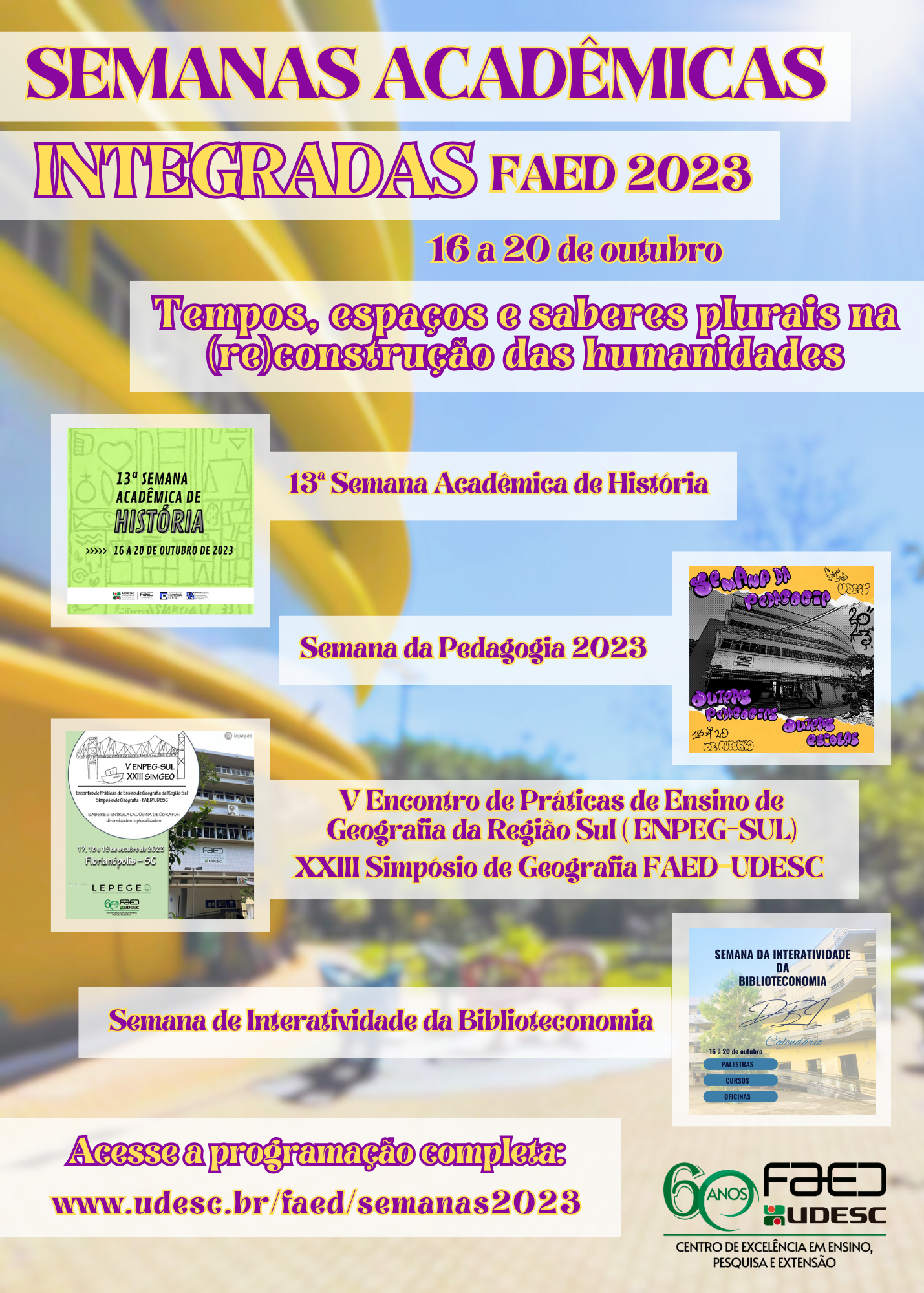 Confira a Programação completa das Semanas Acadêmicas e participe!