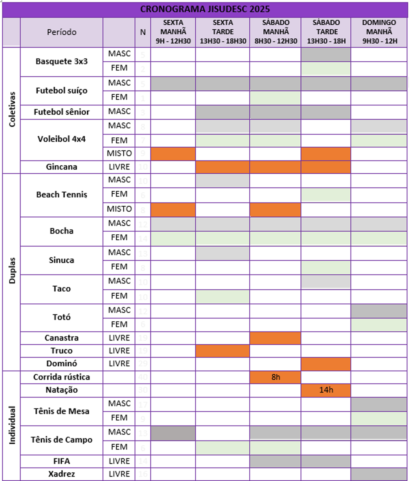 Centro de Ciências da Saúde e do Esporte (Cefid), da Universidade do Estado de Santa Catarina (Udesc), terá pré-inscrições até 10 de outubro para a edição de 2025 dos Jogos de Integração dos Servidores da Udesc (Jisudesc), que ocorrerá de 7 a 9 de novembro, na Associação dos Funcionários Fiscais do Estado de Santa Catarina (Affesc), em Florianópolis.