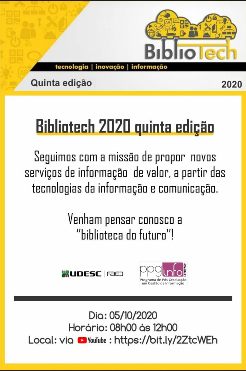 A edição 2020 ocorrerá virtualmente, em formato de live. “Nesta edição seguimos com a missão de debater a biblioteca do futuro e propor novos serviços baseados em TICs. Que tal pensar conosco a biblioteca do futuro?”, convida o professor Jordan.