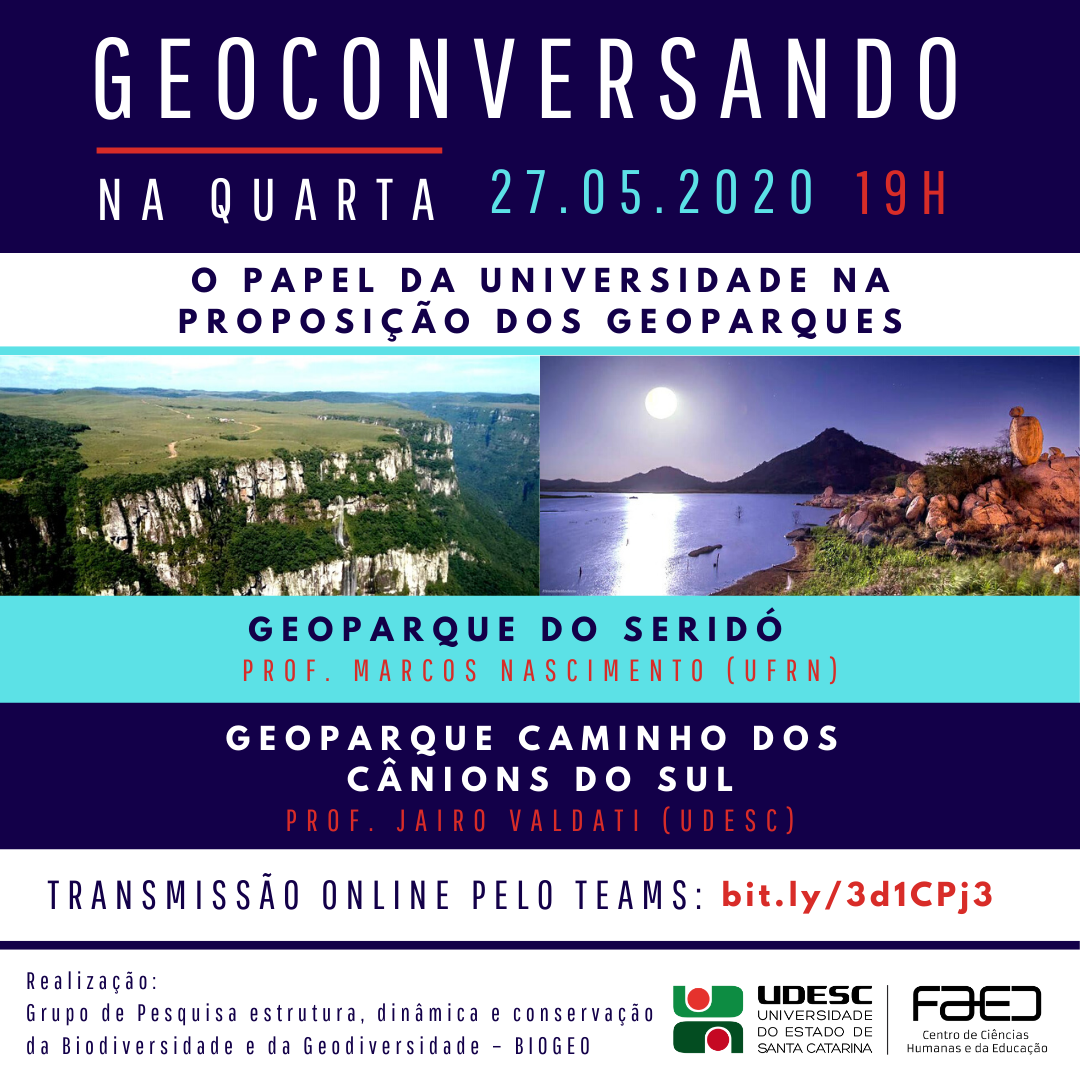O papel da universidade na proposição dos geoparques, às 19h, por meio da