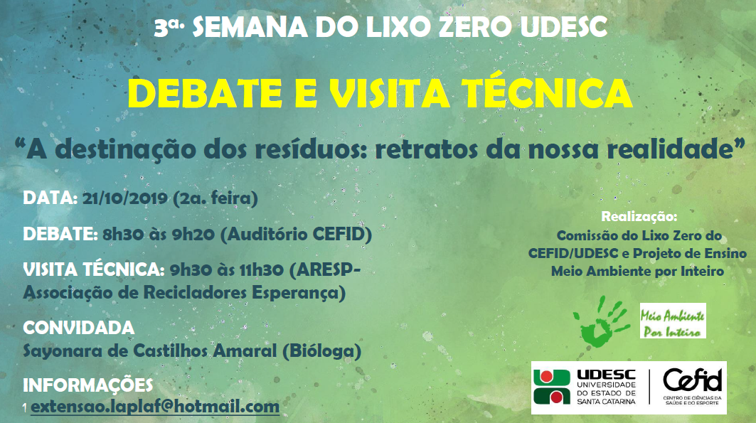 Local: CEFID - Centro de Ciências da Saúde e do Esporte / Auditório CEFID/UDESC e ARESP - Associação de Recicladores Esperança (Florianópolis).