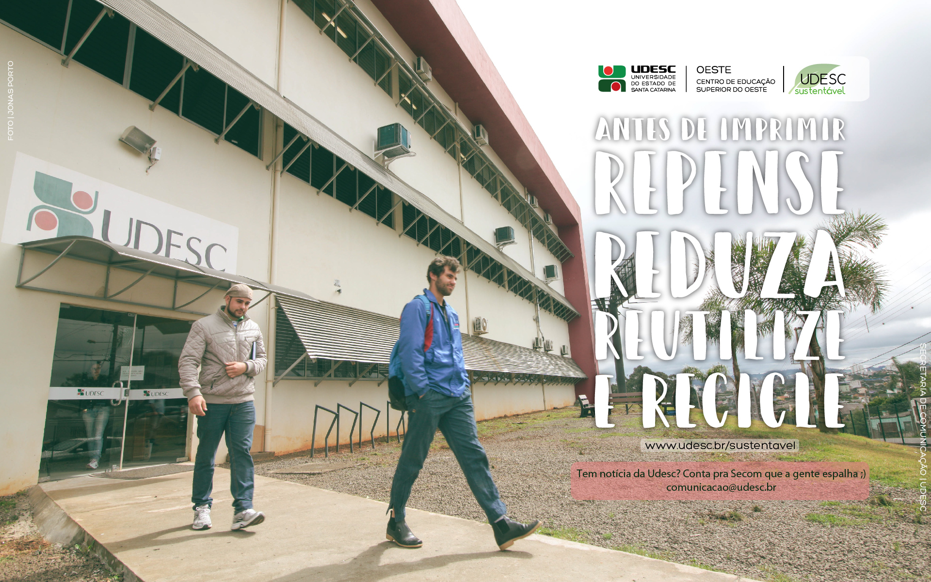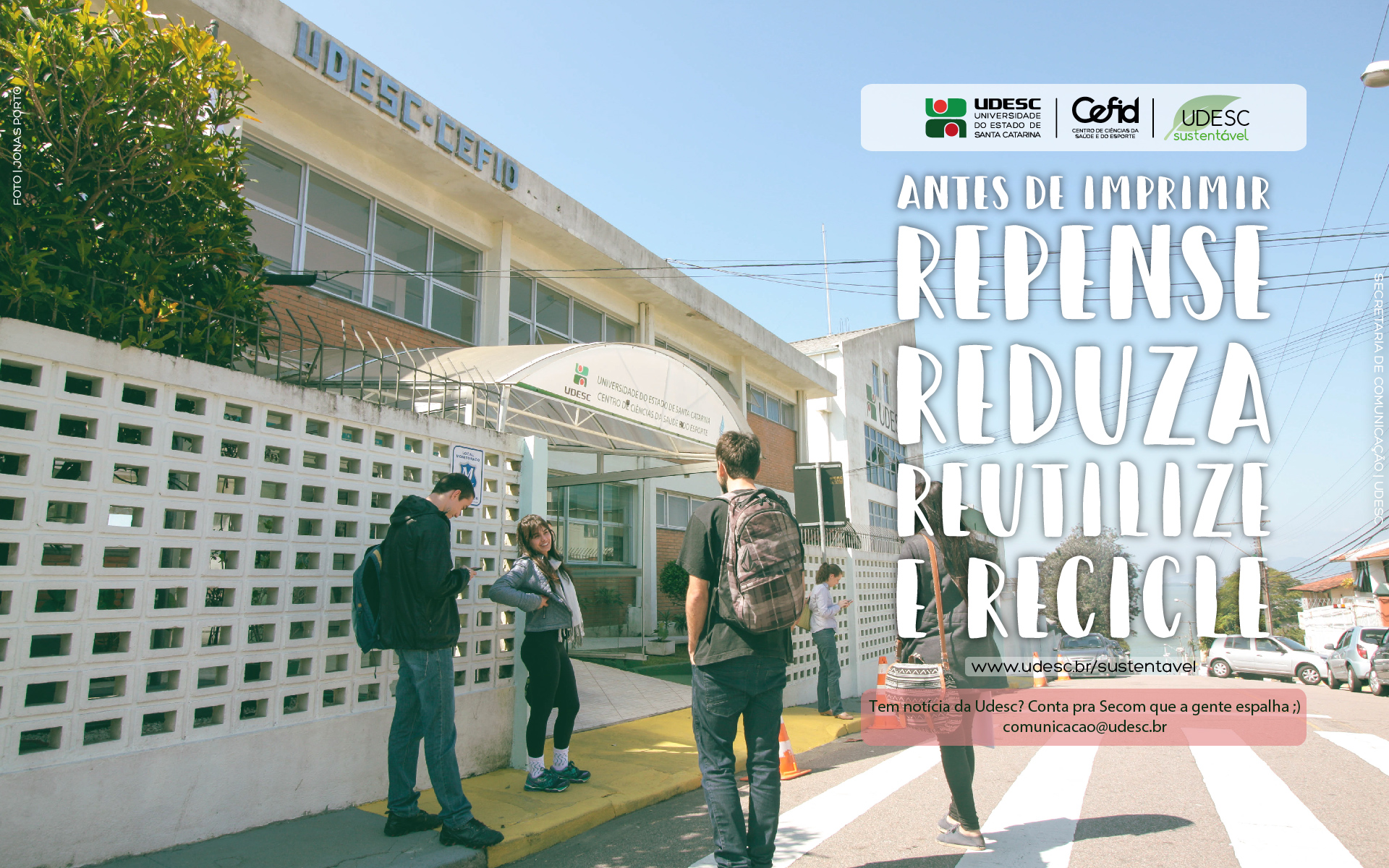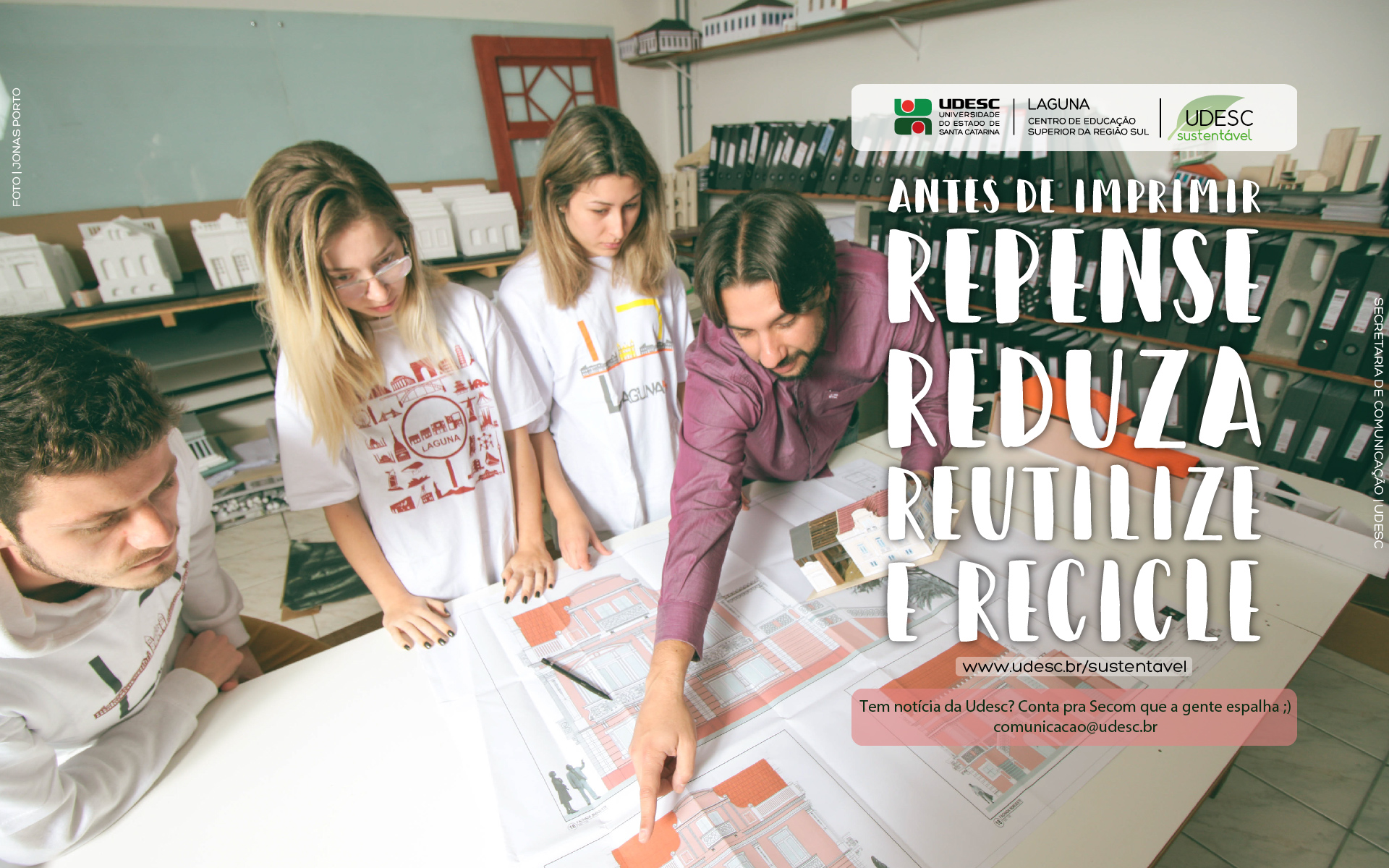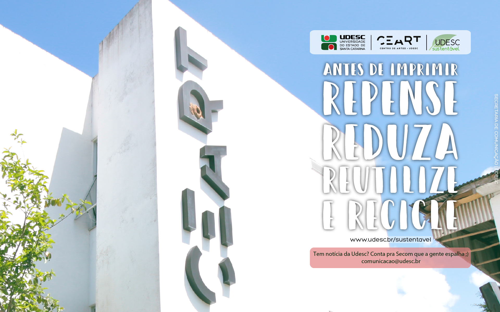 A equipe do Udesc Sustável elaborou papeis de parede para computador com imagens dos 12 centros de ensino da universidade e também da Reitoria. A arte faz parte de uma campanha de conscientização para economia de impressão nos setores da universidade.